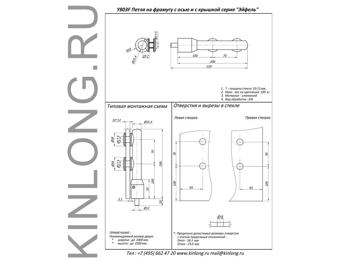 | Скачать Чертеж PDF Y803F Петля на фрамугу с осью с крышкой KIN LONG | ||||||