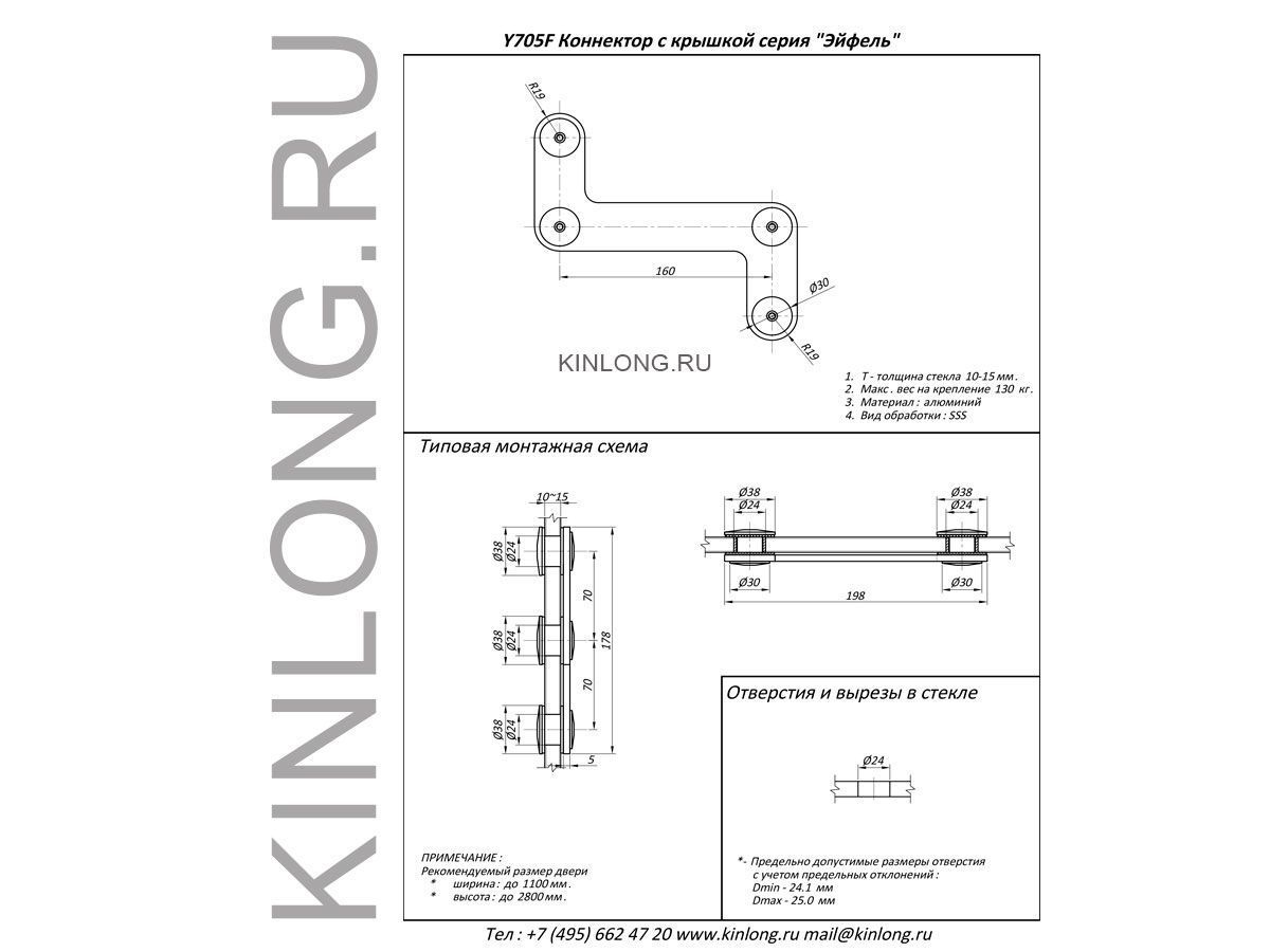 | Скачать Чертеж PDF Y705F Коннектор Z-образный с крышкой, AISI 304, SSS KIN LONG | ||||||