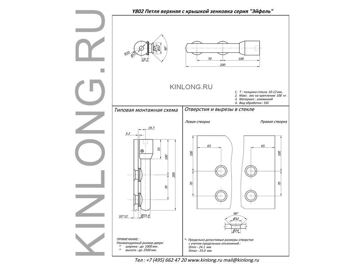 | Скачать Чертеж PDF Y802 Петля верхняя под зенковку, AISI 304, SSS KIN LONG | ||||||