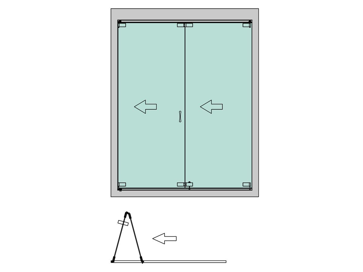 Макс. габариты створки: Высота 2400 мм, ширина 800 мм.
