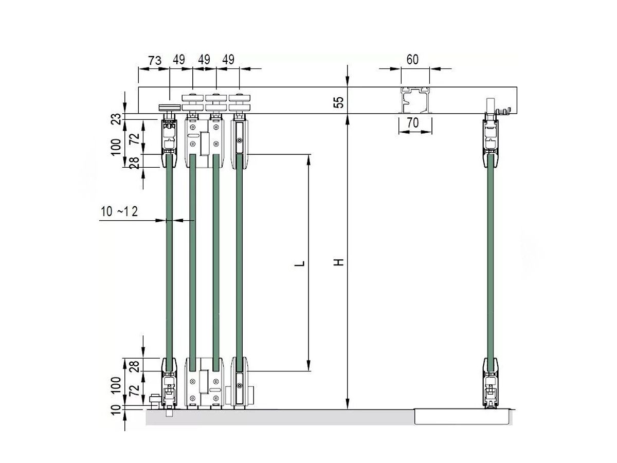 KZD22550 Раздвижная перегородка, 10 стекол, в две стороны