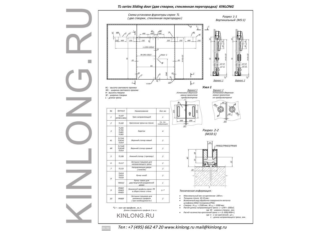 | Скачать Чертеж PDF TL200-2G Серия Shop. Набор фурнитуры двустворчатый, монтаж на стекло KINLONG | ||||||