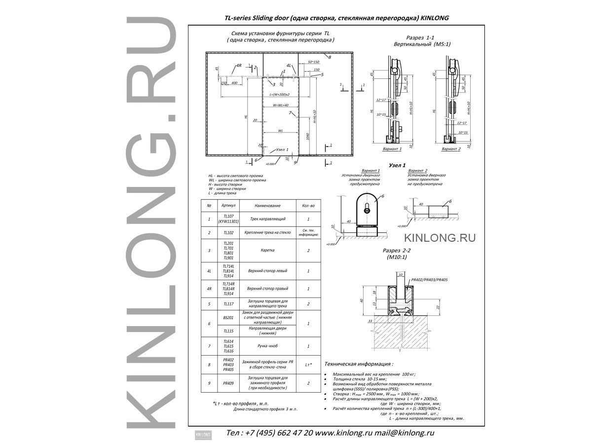 | Скачать Чертеж PDF TL700-1G Серия Room. Набор фурнитуры одностворчатый, монтаж на стекло KINLONG | ||||||