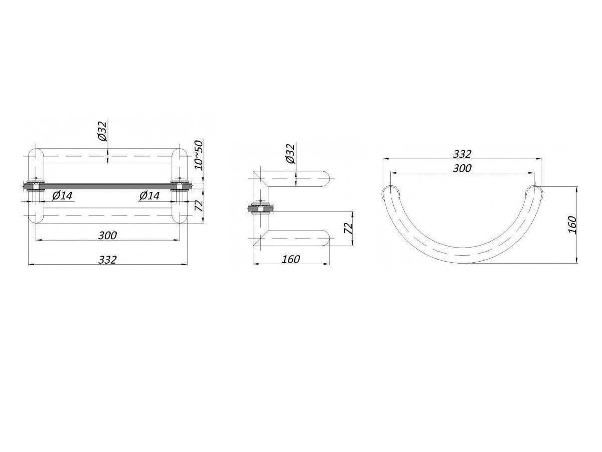 | KLS41203 Ручка дверная L=332 мм, AISI 304, SSS | ![]() |