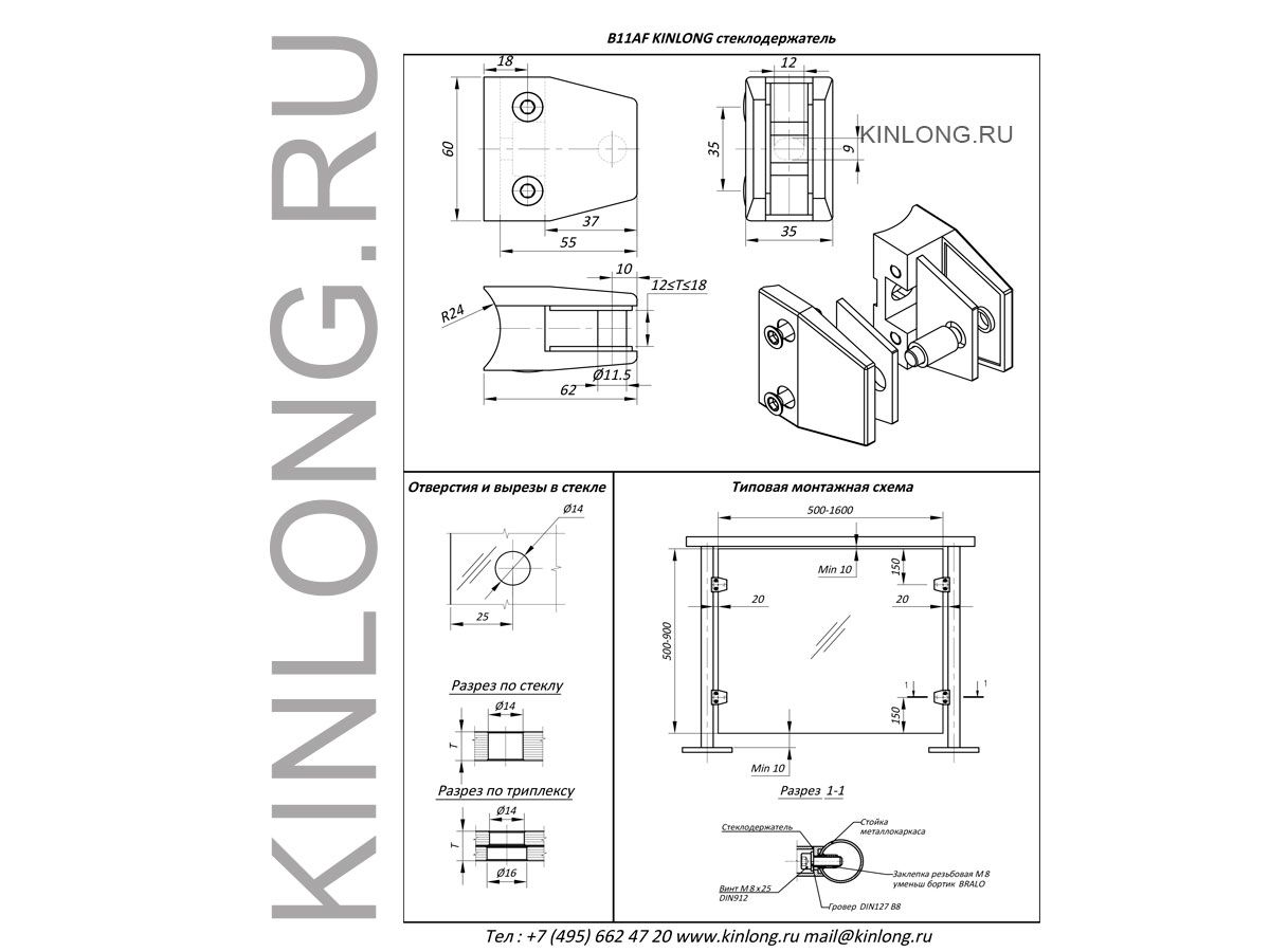 | Скачать Чертеж PDF B11AF Стеклодержатель для стоек ограждений, AISI 304, SSS | ||||||
