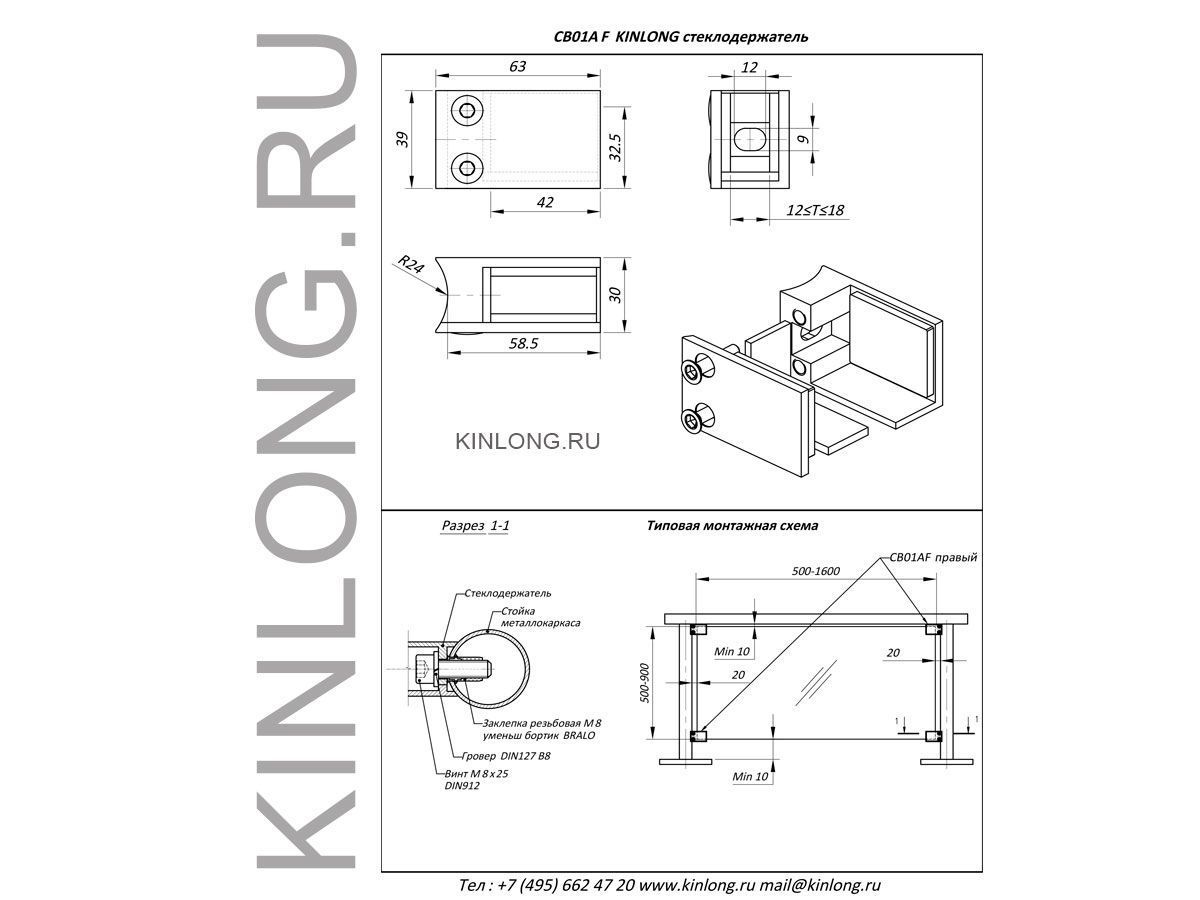 | Скачать Чертеж PDF CB01AF Стеклодержатель на стойку ограждения AISI 304 PSS | ||||||