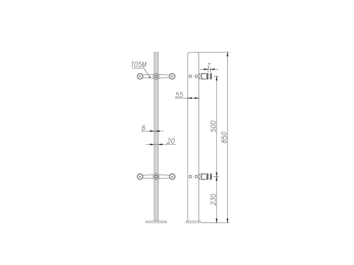 DS1-LT01M Стойка L=850 с центральным стеклодержателем мм, T=12-17.5мм, AISI 304, SSS