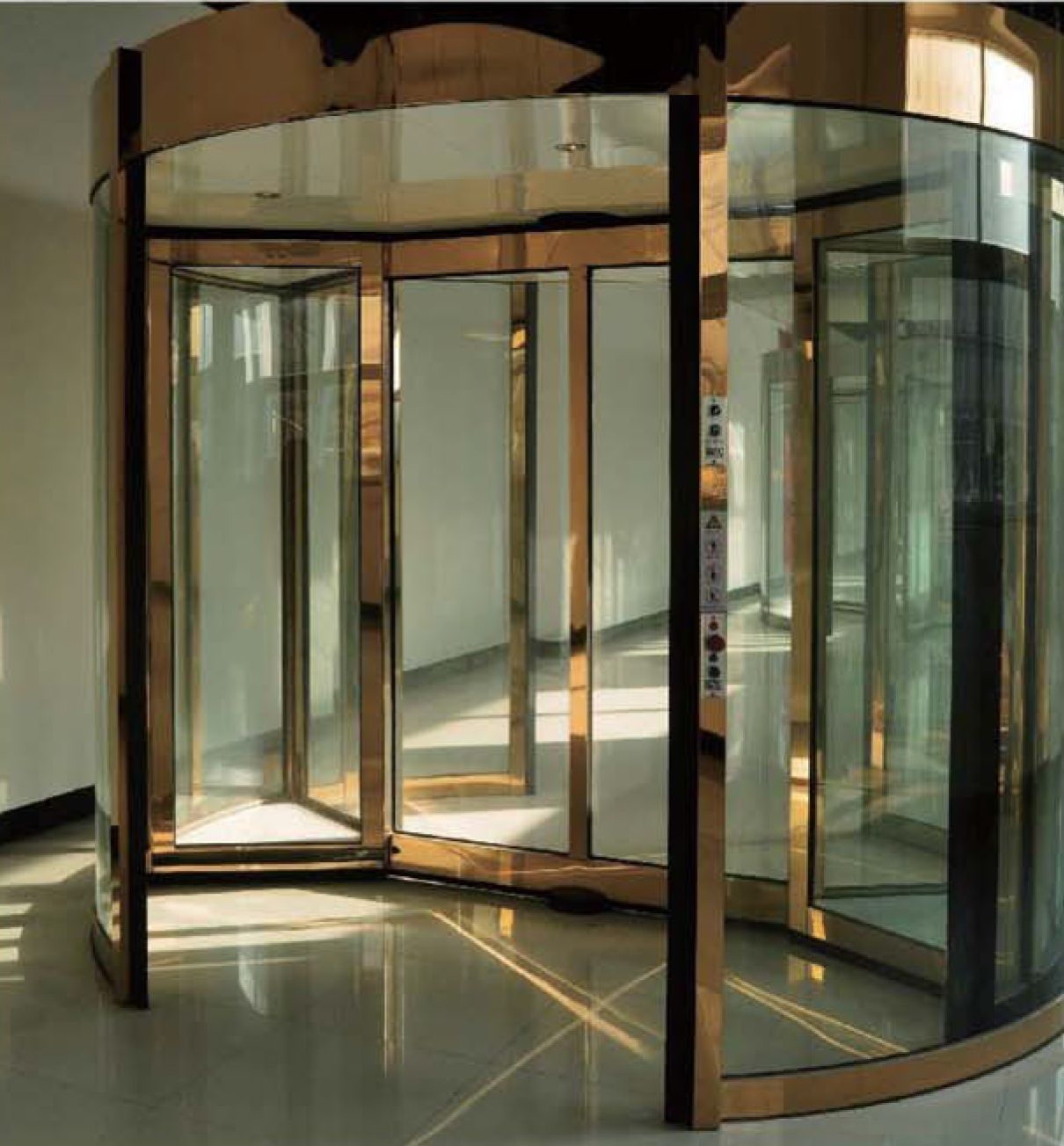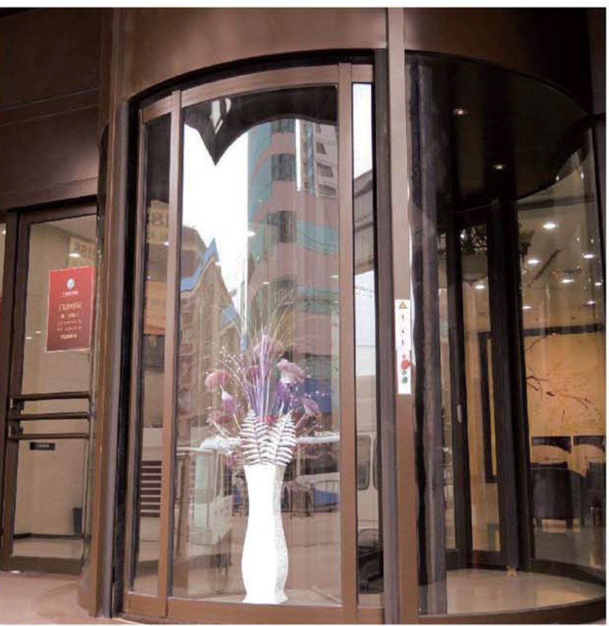 PARD-ZS2000 Карусельная дверь - оснащена двумя треугольными витринами, расположенными на внешней стороне вращающихся створок, которые привлекают внимание и могут использоваться для демонстрации товаров или рекламы. Все двухстворчатые автоматические карусельные двери (с выставочными витринами с обеих сторон и раздвижными дверьми в центре), оснащенные источником бесперебойного питания UPS и PLC контроллером, который позволяет интегрировать в пожарную систему здания.