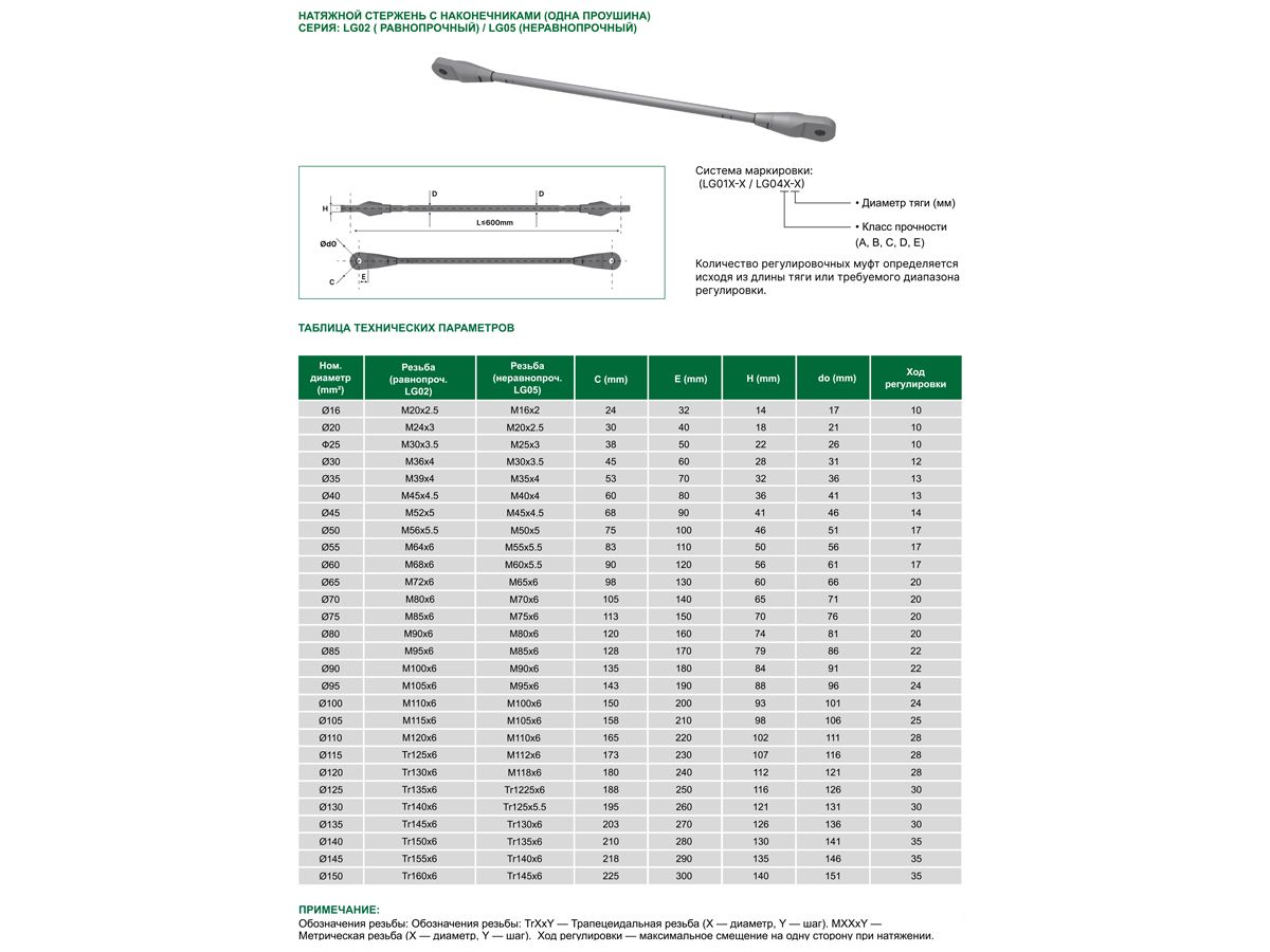 | Скачать Натяжной стержень с наконечниками (одна проушина). Серия LG02 (равнорочный) LG05 (неравнопрочный) | ||||||