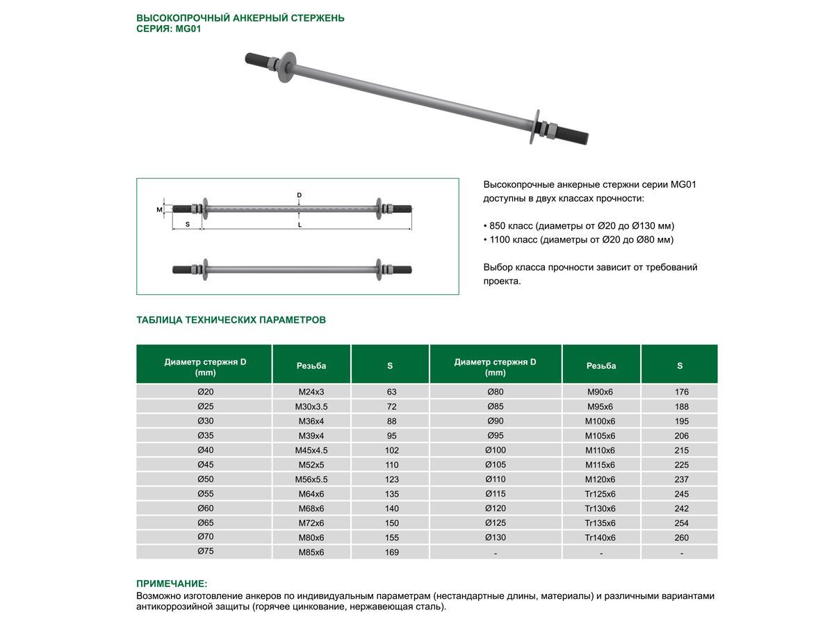 MG01 Высокопрочный анкерный стержень