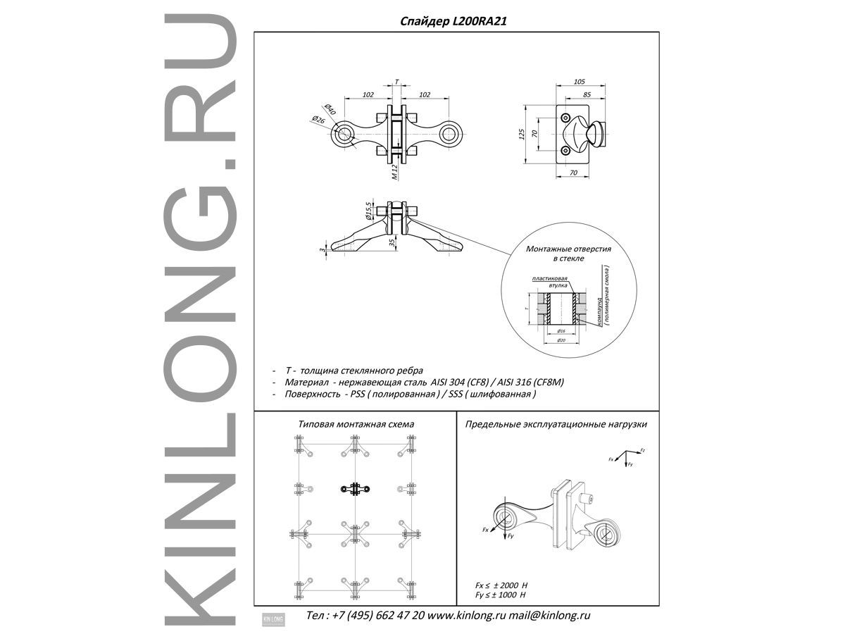 | Скачать Чертеж PDF L200RA21 Спайдер 2-х позиц, AISI 304, SSS KINLONG | ||||||