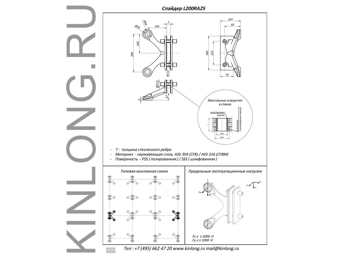 | Скачать Чертеж PDF L200RA25 Спайдер 2-х позиц, AISI 316, PSS KINLONG | ||||||