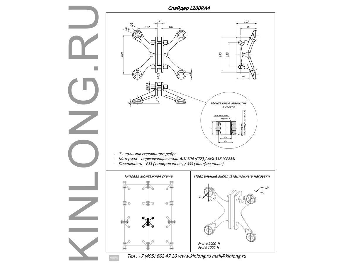 | Скачать Чертеж PDF L200RA4 Спайдер 4-х позиц, AISI 304, PSS KINLONG | ||||||