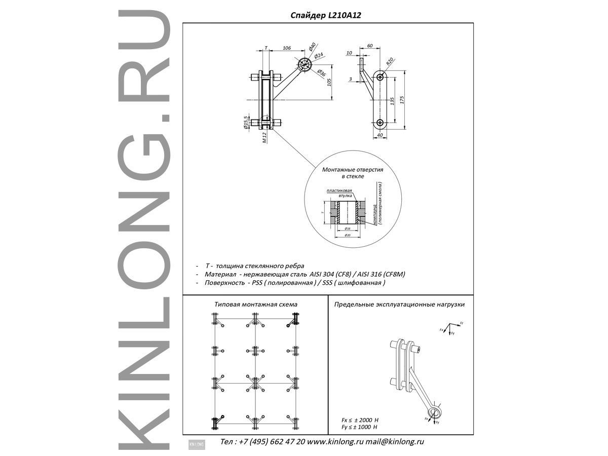 | Скачать Чертеж PDF L210A12 Спайдер 1 позиц,AISI 316, SSS KIN LON | ||||||
