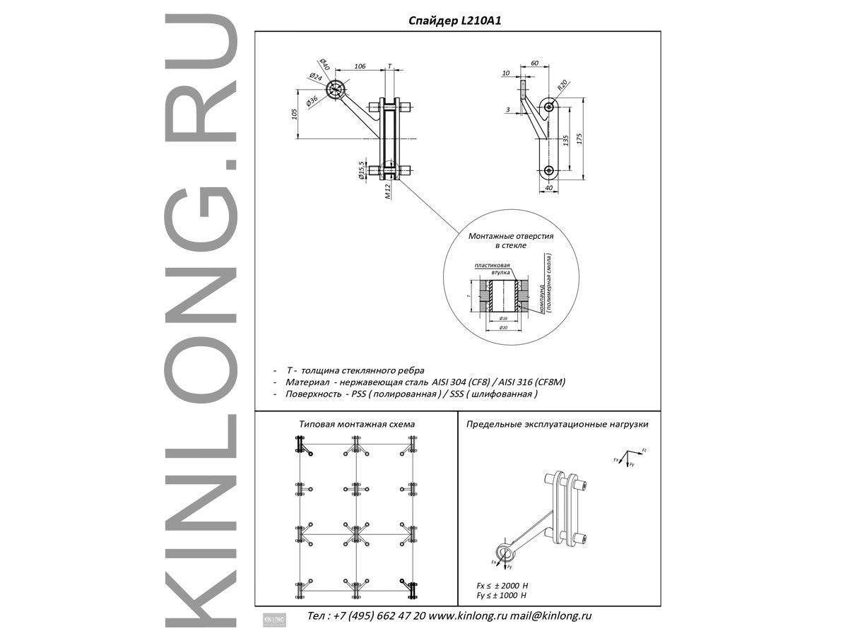 | Скачать Чертеж PDF L210A1 Спайдер 1 позиц, AISI 316, SSS KIN LONG | ||||||