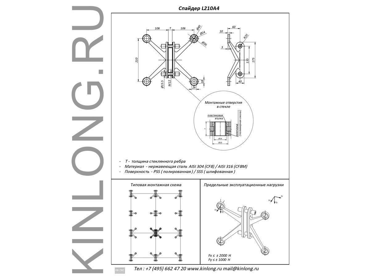| Скачать Чертеж PDF Спайдер 4-х позиц, AISI 316, SSS KIN LONG | ||||||