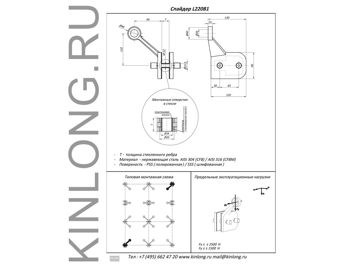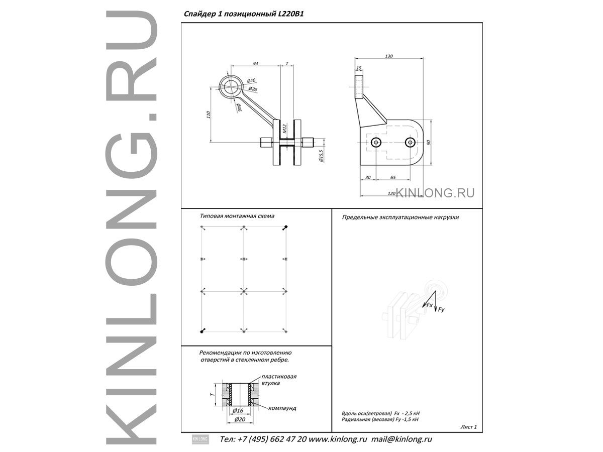 | Скачать Чертеж PDF L220B1 Спайдер 1 позиц, AISI 316, SSS KINLONG | ||||||