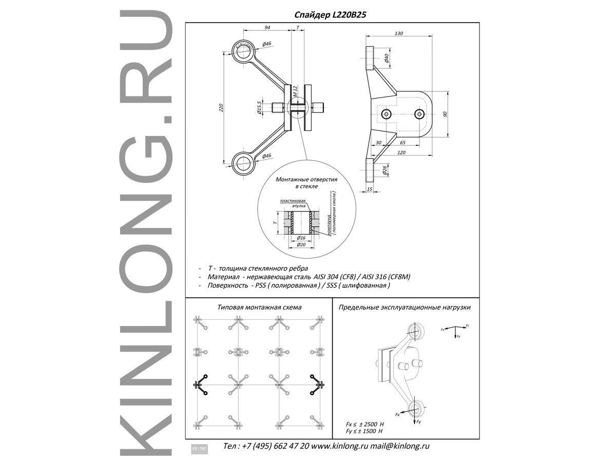 | Скачать Чертеж PDF L220B25 Спайдер 2-х позиц, AISI 304, PSS KIN LONG | ||||||