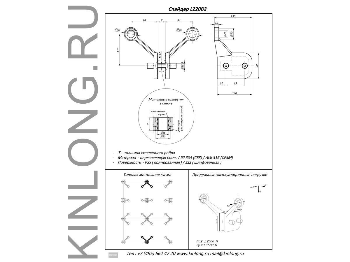 | Скачать Чертеж PDF L220B2 Спайдер 2-х позиц, AISI 316, SSS KIN LONG | ||||||