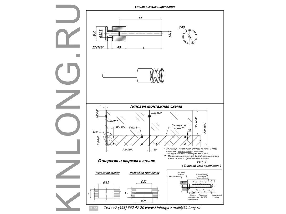| Скачать Чертеж PDF YM03B Стеклодержатель точечный стена-стекло AISI 304 SSS KINLONG | ||||||