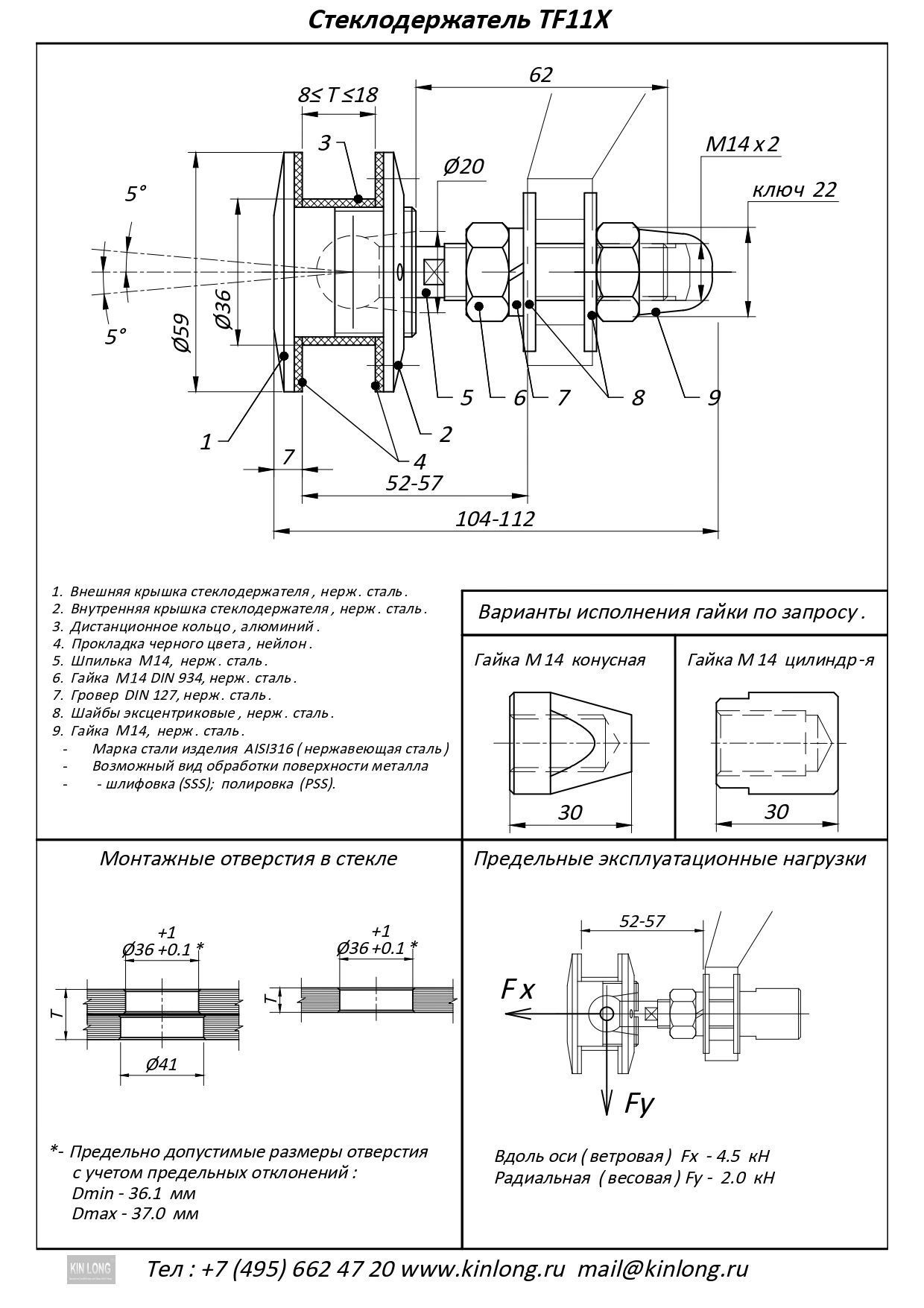 | TF11X Стеклодержатель, AISI 316, PSS | ![]() |