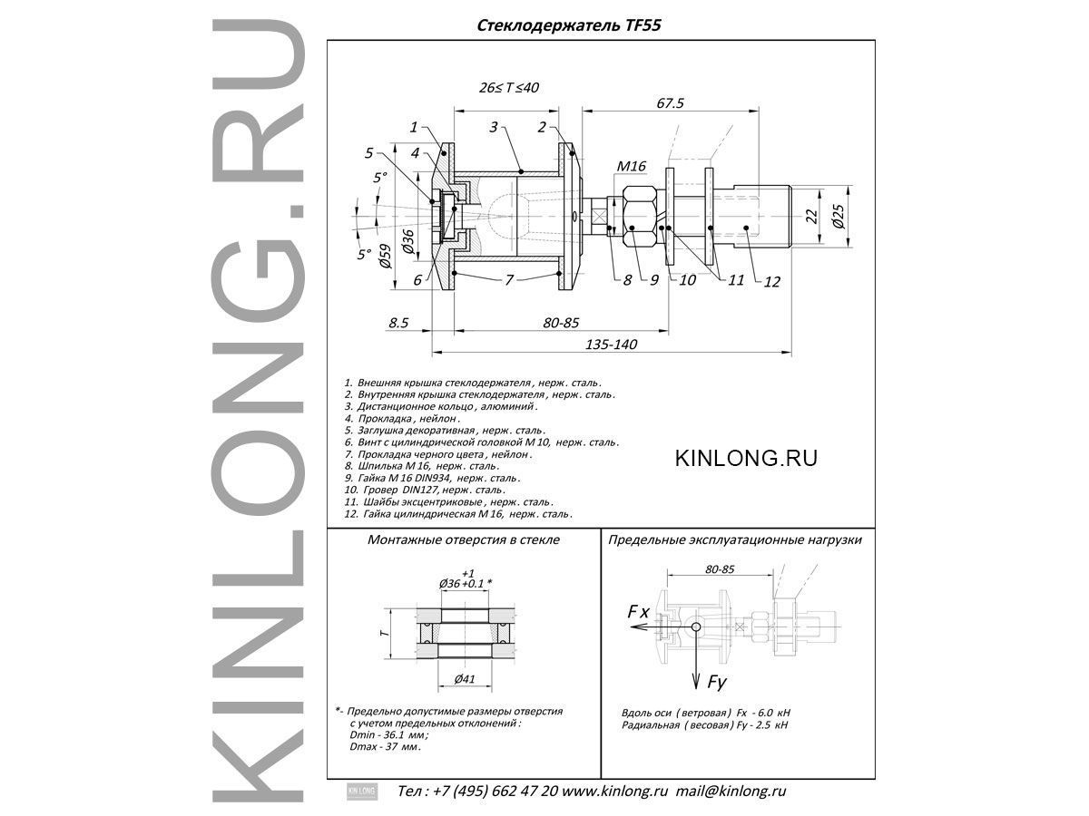 TF55 Стеклодержатель, AISI 316, PSS