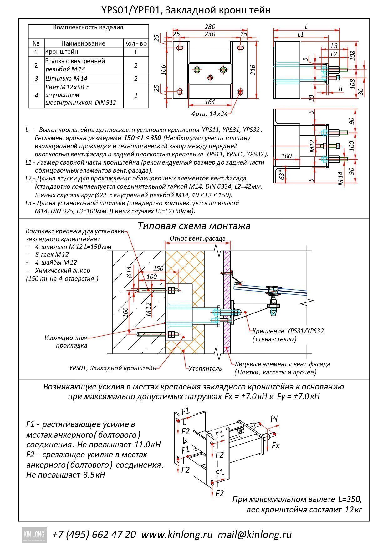 | Скачать Чертеж закладной кронштейн YPS01 YPF01 | ||||||