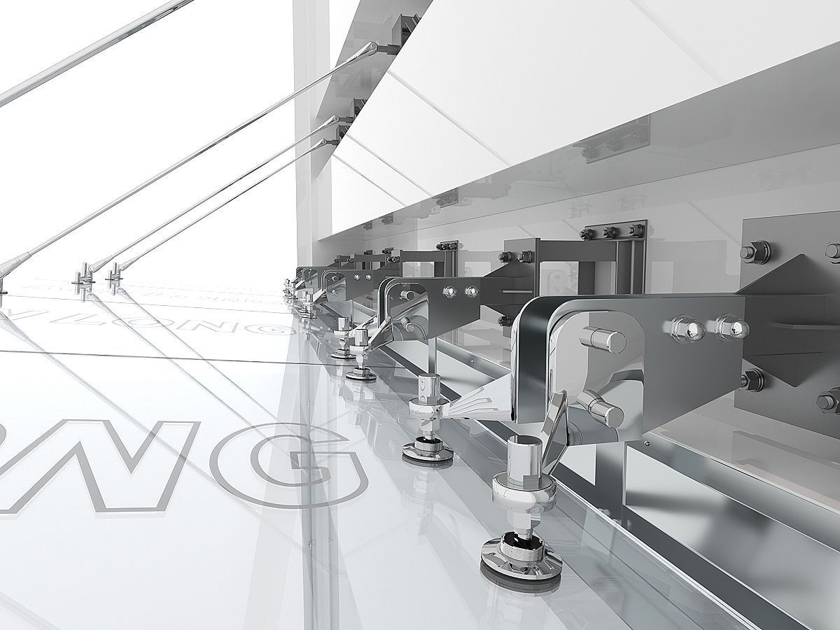 Отзывы о товаре: Стеклянный козырек на тягах с подсистемой из нержавеющей стали, размер 5000 мм на 1500 мм
