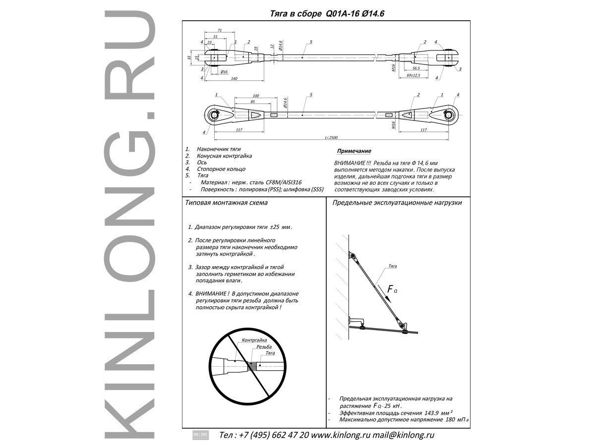 Длина тяги L, мм по осям креплений наконечников указывается в заказной спецификации, которую необходимо подписать и выслать на почту mail@kinlong.ru.