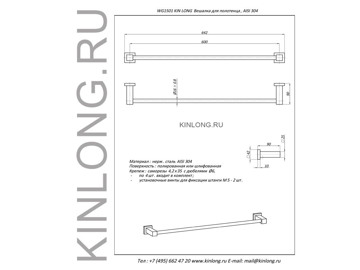 | Скачать Чертеж PDF WWG15010 (WG1501) Вешалка для полотенца, AISI 304, PSS KINLONG | ||||||
