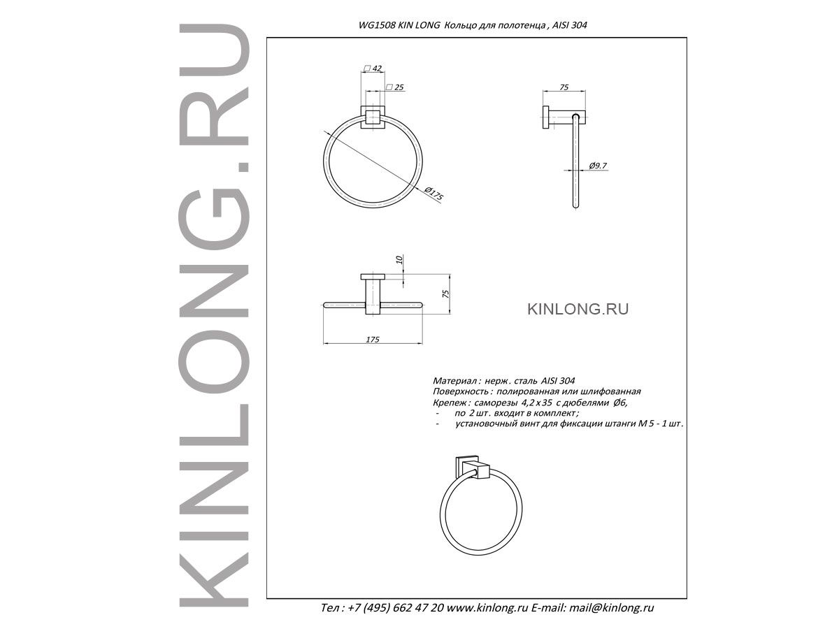| Скачать Чертеж PDF WWG15080 (WG1508) Кольцо для полотенца, AISI 304, PSS KINLONG | ||||||