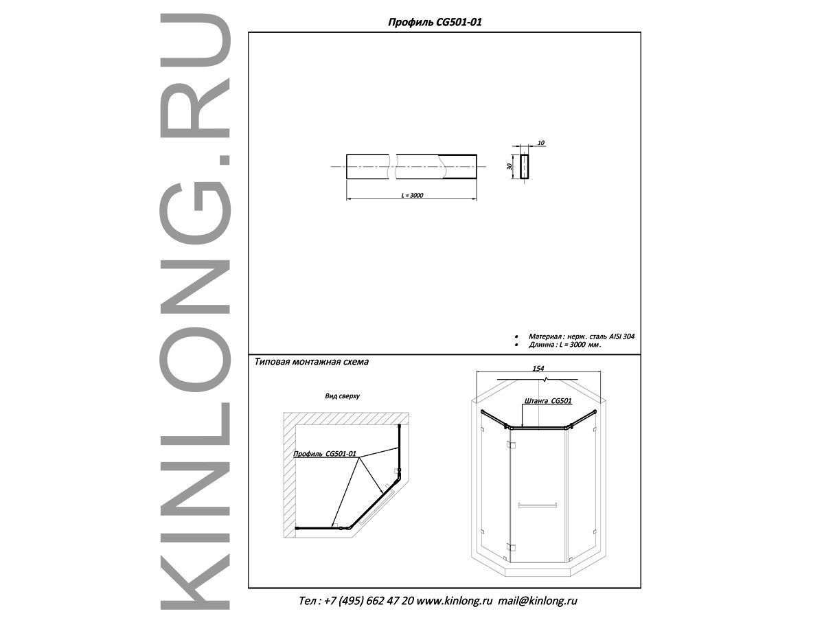 | Скачать Чертеж PDF WCG50010-01 (CG501-01) Штанга проф. AISI 304, PSS KINLONG | ||||||