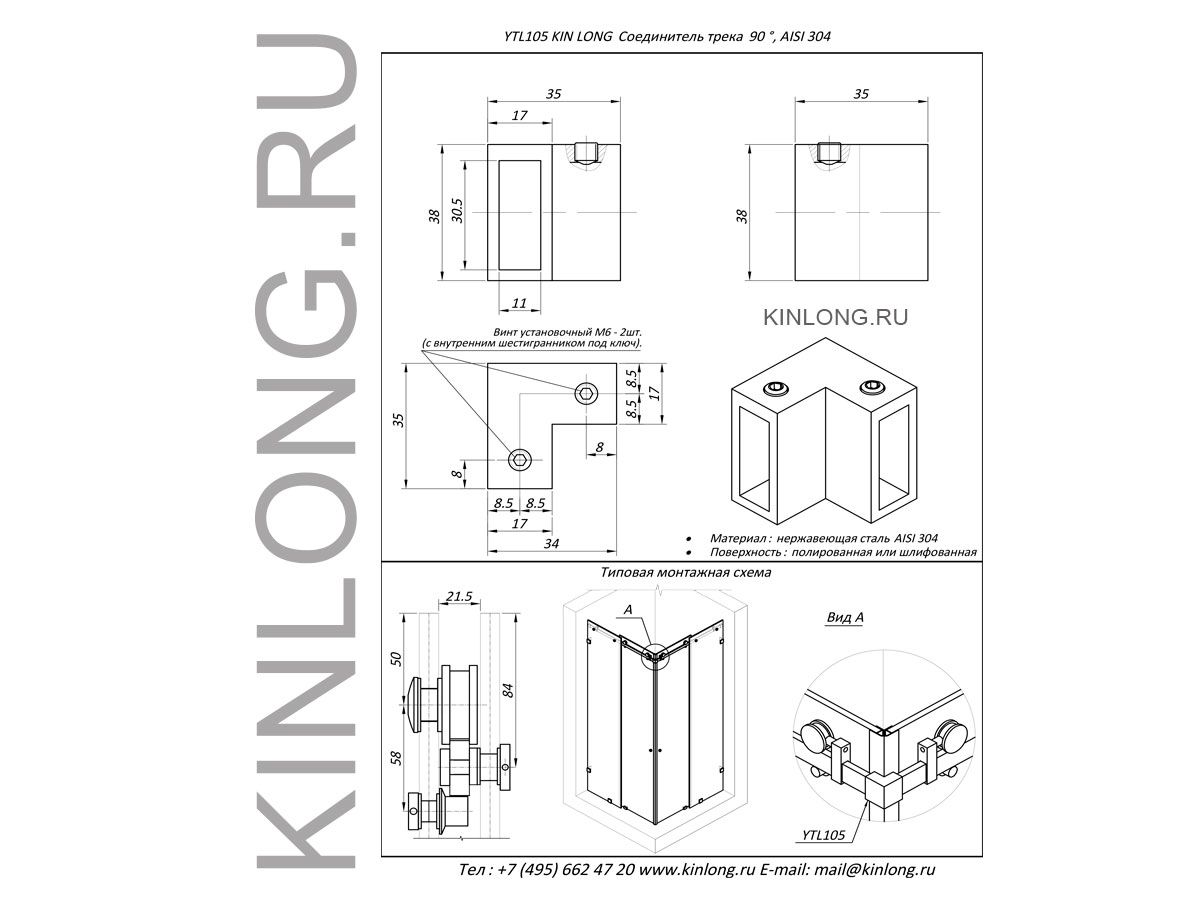 | Скачать Чертеж DWG WTL10050 (YTL105) Соединитель трека 90 град, AISI 304, SSS KINLONG | ||||||