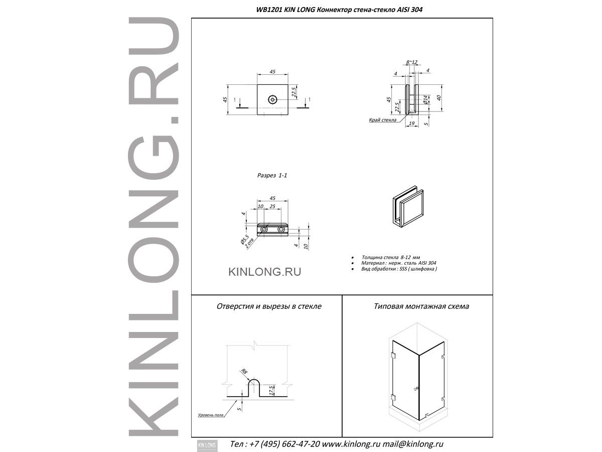 | Скачать Чертеж PDF WWB12010 Коннектор стена-стекло, AISI 304, PSS KINLONG | ||||||
